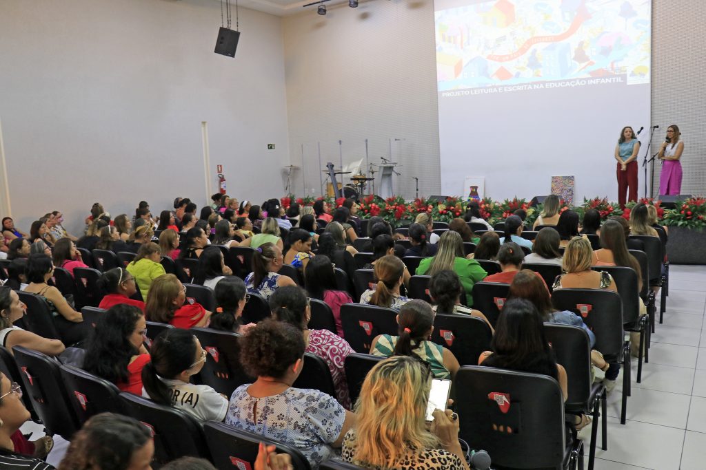 Cerca de 350 professores da pré-escola da Rede Municipal de Ensino de João Pessoa participaram, na tarde desta segunda-feira (25), de mais uma etapa do processo de formação continuada promovida pela Secretaria de Educação e Cultura (Sedec). Um dos momentos da capacitação, realizada no Espaço Gospel, no bairro do Bancários, foi com a professora doutora Marinês Andrea Kunz, que ministrou a formação ‘Compromisso Nacional Criança Alfabetizada – Leitura e Escrita na Educação Infantil (LEEI/PB)’.