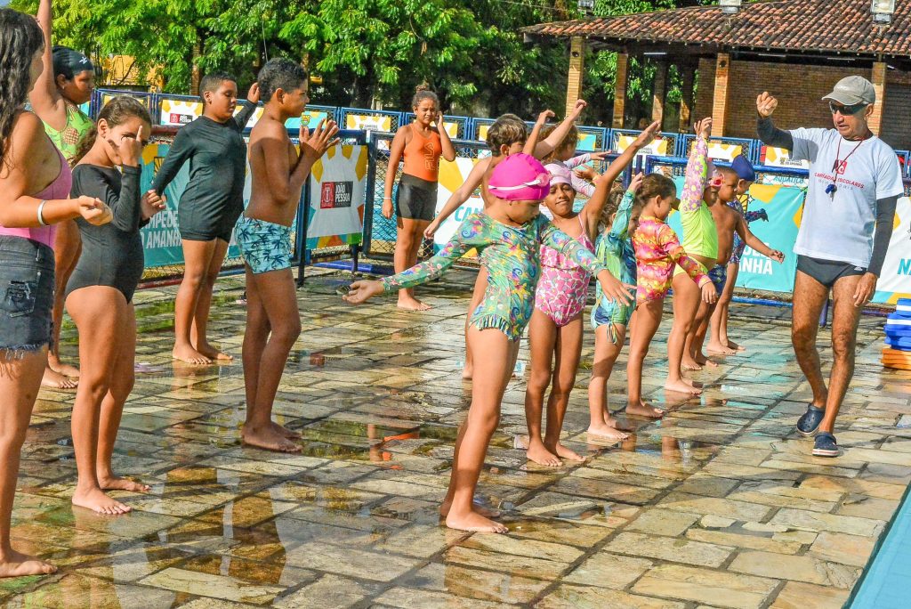 Todas as terças e quintas-feiras, faça chuva ou faça sol, os alunos que fazem natação e hidroginástica marcam presença e agitam as piscinas do Centro Administrativo Municipal (CAM), em Água Fria. As aulas gratuitas são oferecidas pela Prefeitura de João Pessoa, por meio do programa ‘Esporte pela Educação’, da Secretaria de Educação e Cultura (Sedec-JP). São mais de 1.200 alunos beneficiados pelo projeto, que contempla outras modalidades como judô, ginástica rítmica, basquete, futsal e bocha paralímpica.