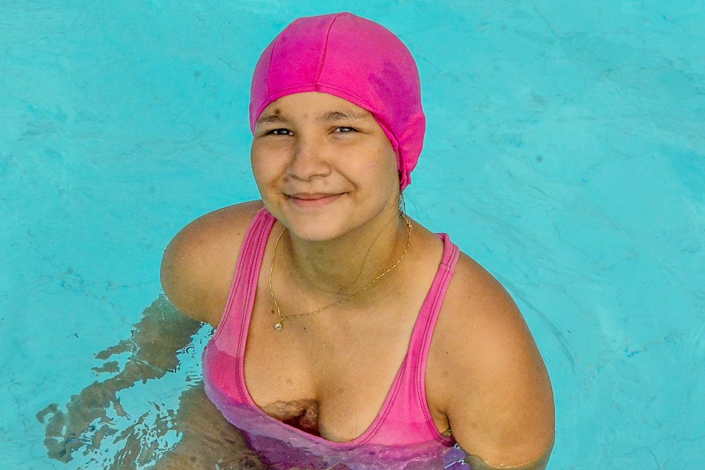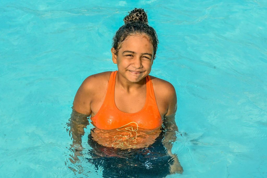 Sara Heloisa também começou no esporte por orientação médica. Ela sofre de escoliose e sentia fortes dores na coluna. A estudante começou no projeto quando tinha seis anos e segue participando das aulas há cinco. “Eu senti que minha coluna ficou mais reta depois da natação. Eu amo as aulas, não perco nenhuma, só quando eu fico doente. A parte mais legal é quando a gente nada 25 metros”, compartilha.