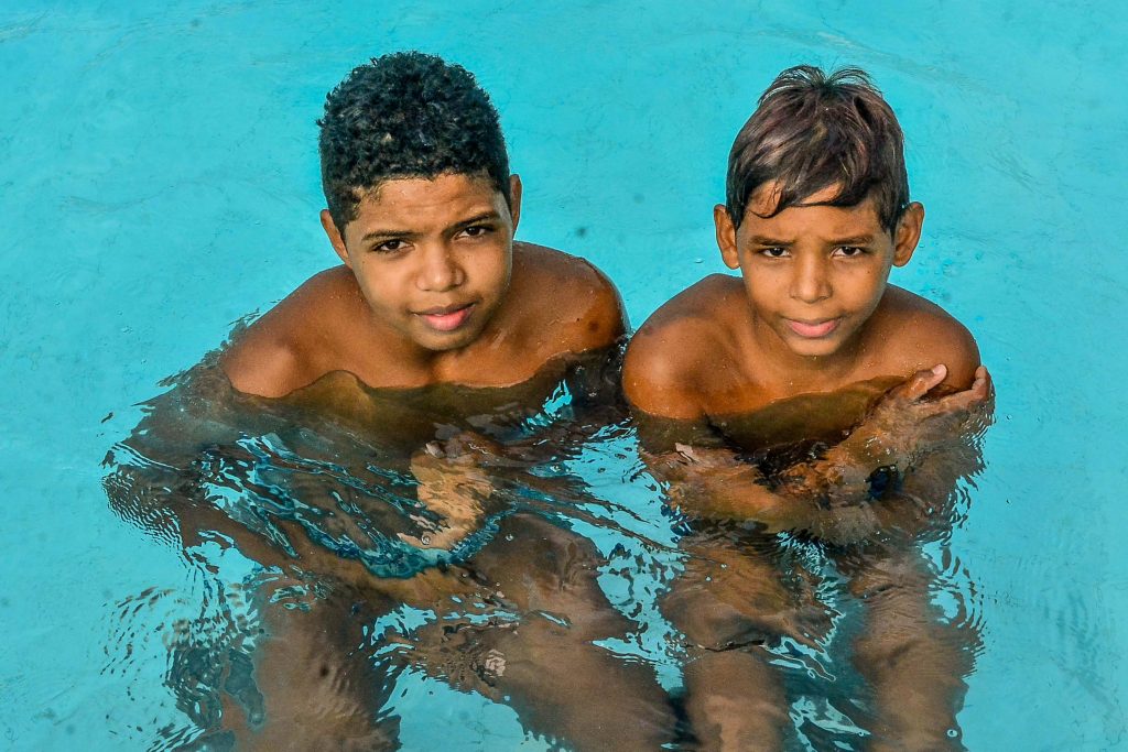 Os primos Walysson e Michel, ambos de 12 anos, entraram este ano no programa ‘Esporte pela Educação’. É a avó, dona Severina Araújo, quem os leva para as aulas de natação no Centro Administrativo Municipal. “Semana passada eu precisei viajar e ninguém conseguiu trazer eles para a aula. E foi justamente na semana que entregaram medalhas. Eles ficaram tristes demais. Mas é assim mesmo. Eu procuro incentivar eles nas atividades sempre que posso”, comenta dona Severina Araújo.