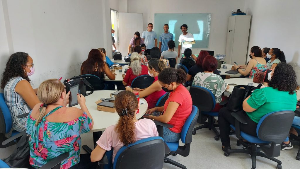 Durante todo o ano, também participaram de formação continuada presencial diretores, professores, vigilantes, porteiros, merendeiras, cuidadoras, professores e especialistas dos CMEIs. E teve também formação a distância para os professores pela plataforma do ‘EducaSim de Gestão Escolar’, que mostrou registro de frequência, notas e demais funcionalidades.