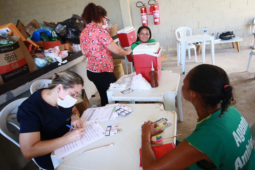 Maria Diones é a coordenadora da Associação Acordo Verde e elogiou a ação da Prefeitura de levar suas equipes para atender os catadores de materiais recicláveis no próprio local de trabalho. “Para nós é uma coisa boa, porque a gente não tem tempo de ir num posto de saúde, tomar uma vacina. E como a gente lida com vidro, ferro, plástico, é muito importante estar vacinado pra não ficar doente. Agradeço de coração pelo trabalho de todos, principalmente pelo galpão, pois a gente tem agora um espaço limpo para trabalhar com dignidade”, relatou.