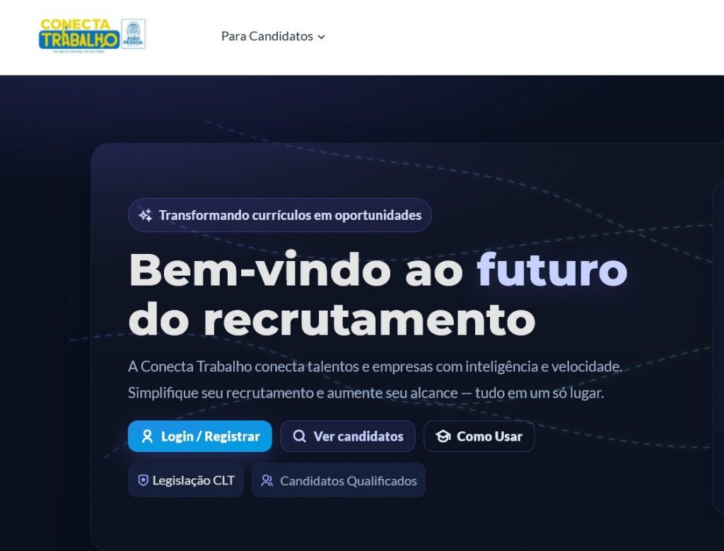 Parceria com a Fecomércio – Para o presidente da Fecomércio Paraíba, Marconi Medeiros, o ‘Conecta Trabalho’ representa um avanço no modelo de recrutamento no município. “Celebramos esta parceria com a Prefeitura de João Pessoa porque acreditamos no futuro do recrutamento de trabalhadores no nosso município. Trata-se de uma ferramenta moderna, totalmente digital, que elimina a necessidade de deslocamento até unidades físicas para cadastro”, afirmou.