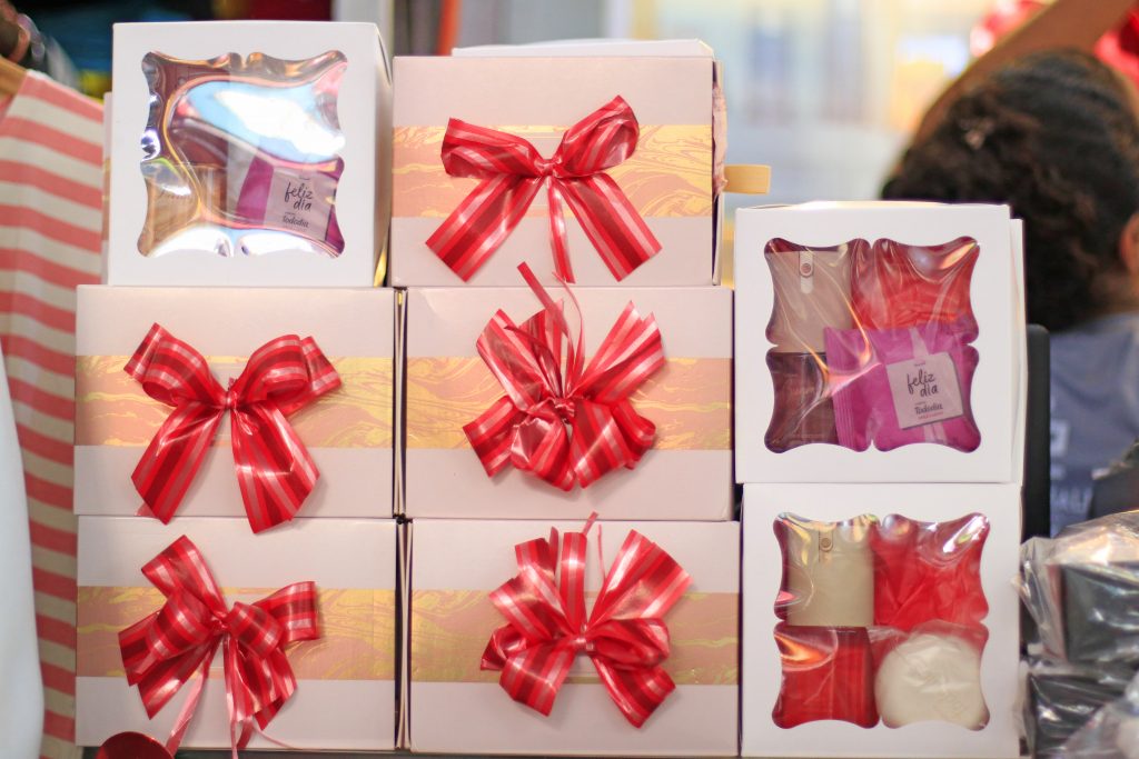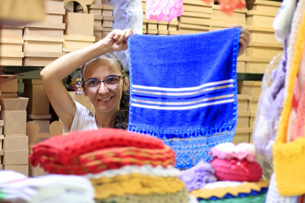 No box de Mônica da Silva Almeida, um produto diferente e que, certamente, vai deixar uma mãe super feliz. Bolsa em crochê, feitas pela própria comerciante com muito carinho e cuidado. “A bolsa sai por 60 reais, mas também tenho pano de prato com crochê, passadeiras, conjunto de cozinha e de banheiro, toalhas e muitas outras coisas. Espero vender bem agora nos últimos dias”, contou.