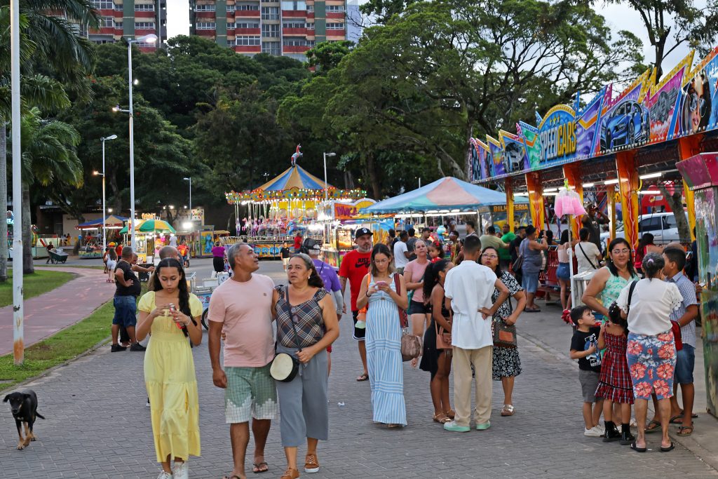 Famílias de diversos bairros da Capital participaram, neste sábado (28), de mais uma edição do projeto ‘Férias no Parque’, realizado pela Prefeitura de João Pessoa, por meio da Secretaria de Desenvolvimento Urbano (Sedurb). A iniciativa, que irá acontecer até o terceiro fim de semana do mês de julho, transforma a área do Parque Solon de Lucena em um grande palco de lazer ao ar livre, garantindo diversão, gastronomia e artesanato para o público de todas as idades.