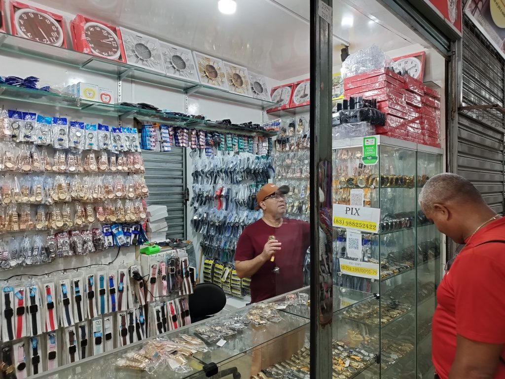 Já Severino Andrade, mais conhecido como Ramos Relógios, afirmou que quem procurar o box dele vai encontrar produtos por até R$ 10 (relógio de pulso). Apesar dos preços populares, ele disse que ainda é possível garantir um desconto, caso o cliente adquira mais de um produto. “Temos relógios de parede e de pulso, acessórios como pulseira e caixas para todos os gostos e bolsos, além da facilidade no pagamento por cartão e pix”, comentou.
