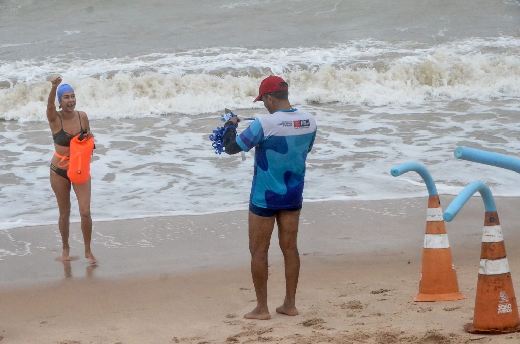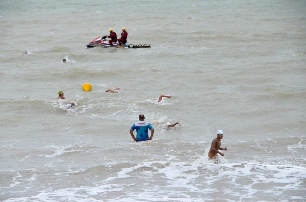 A Prefeitura de João Pessoa, através da Secretaria de Juventude, Esporte e Recreação (Sejer), promoveu, na manhã deste sábado (17), o II Simulado de Águas Abertas, na Praia do Cabo Branco. A atividade faz parte do projeto ‘Natação no Mar’. Apesar da chuva, o evento contou com a participação de mais de 30 nadadores, que fizeram um percurso no mar de 1,5km.