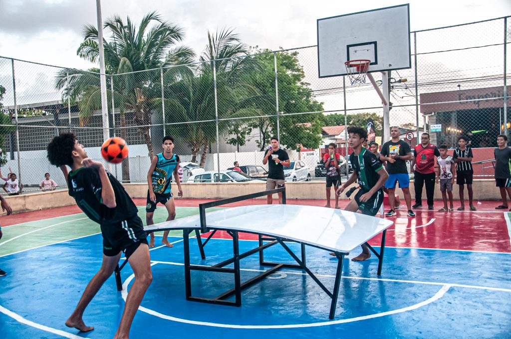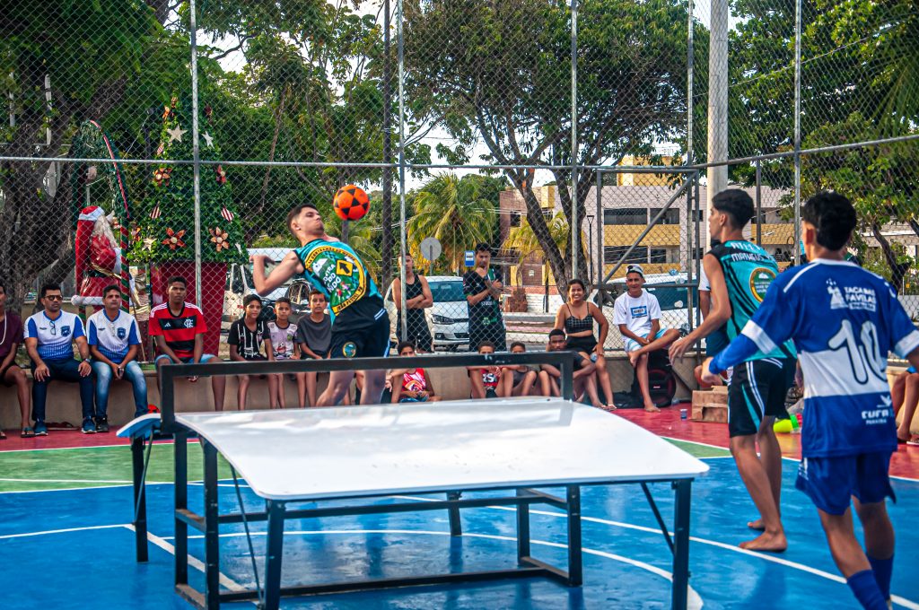 Futmesa – Para jogar futmesa basta uma mesa com uma rede e uma bola de futebol. O esporte é uma mistura de tênis de mesa, futebol e futevôlei, jogado em formato individual ou em duplas. Cada jogador ou dupla se posiciona em lados opostos da mesa e o objetivo é fazer com que o adversário não consiga devolver a bola. São permitidos três toques com as mesmas partes do corpo usadas no futebol e no futevôlei: cabeça, ombro, coxa, peito e pé, sendo proibido tocar na bola ou na mesa com mãos e braços.