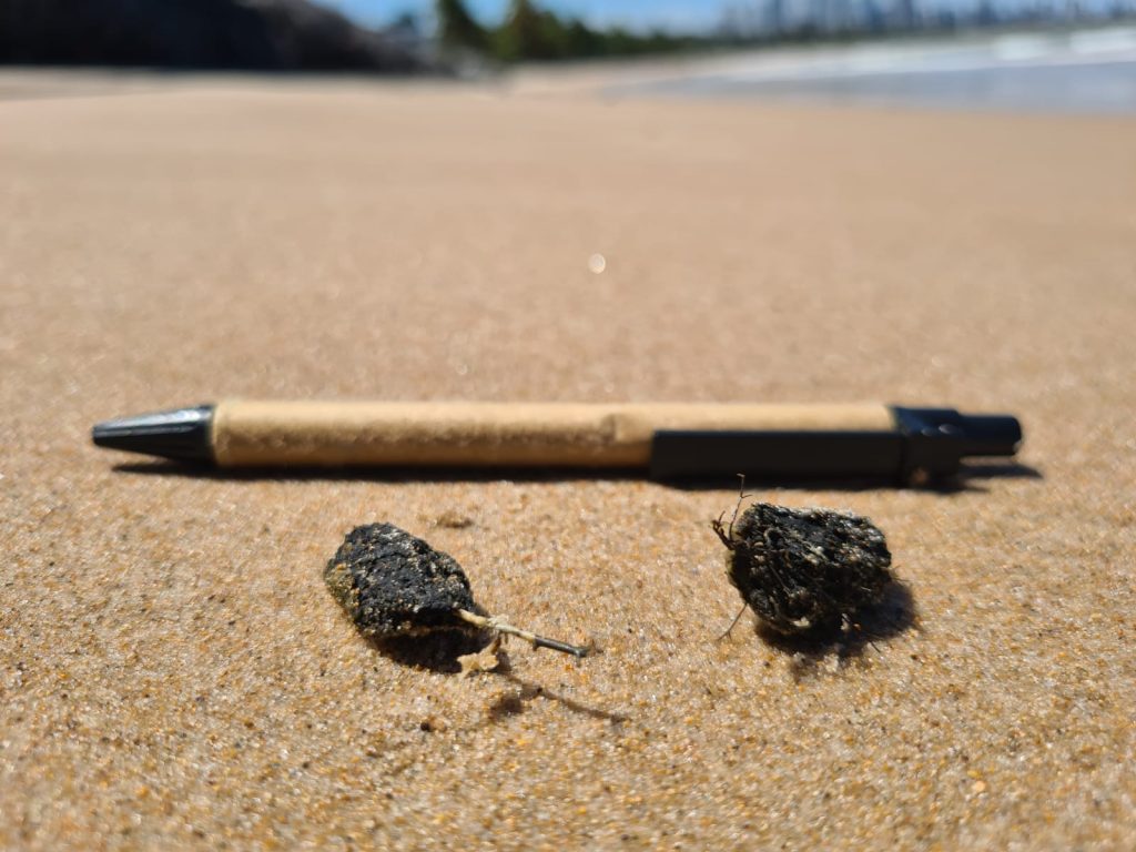 Os fiscais explicaram que resíduo biológico semelhante já foi encontrado no litoral do Estado e, na época, foi comprovado que eram fezes de tartarugas marinhas, que se alimentam de algas.