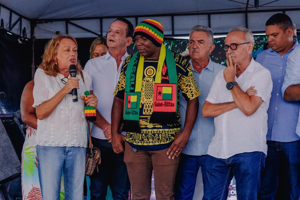 “Há quatro anos eu estive aqui num assentamento muito pobre, muito sofrido, casa de papelão, de madeira, mas com muita organização e com muita esperança na minha pessoa por ter ganho a eleição. E Deus está me proporcionando hoje, entregando o primeiro condomínio quilombola do Brasil, premiado nacionalmente como projetos de habitação social e com respeito, além da qualidade dos apartamentos, o cuidado de acessibilidade, o lazer, a academia para prática esportiva. Vamos fazer o pequeno centro comercial, ou seja, dar dignidade e realizar um sonho que todos têm de ter a casa própria”, enfatizou o prefeito.