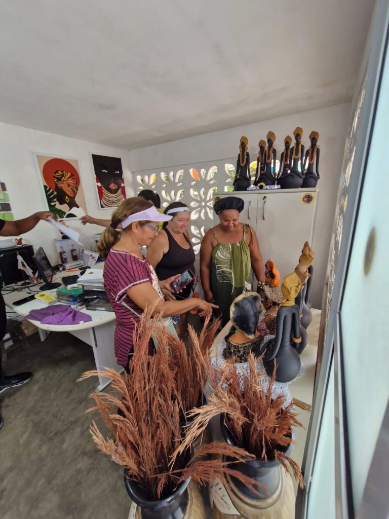 Durante a visita, o grupo de mulheres conheceu o trabalho feito pela associação, que mantém aulas de música, informática, pinturas e peças de artesanato.