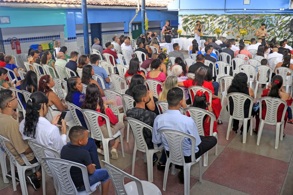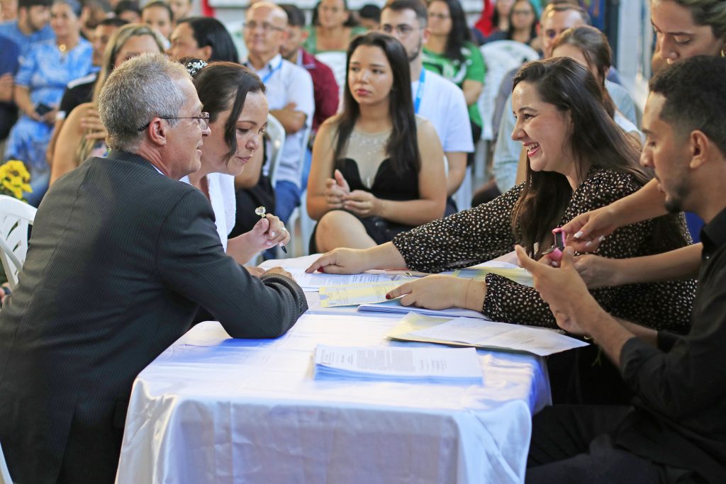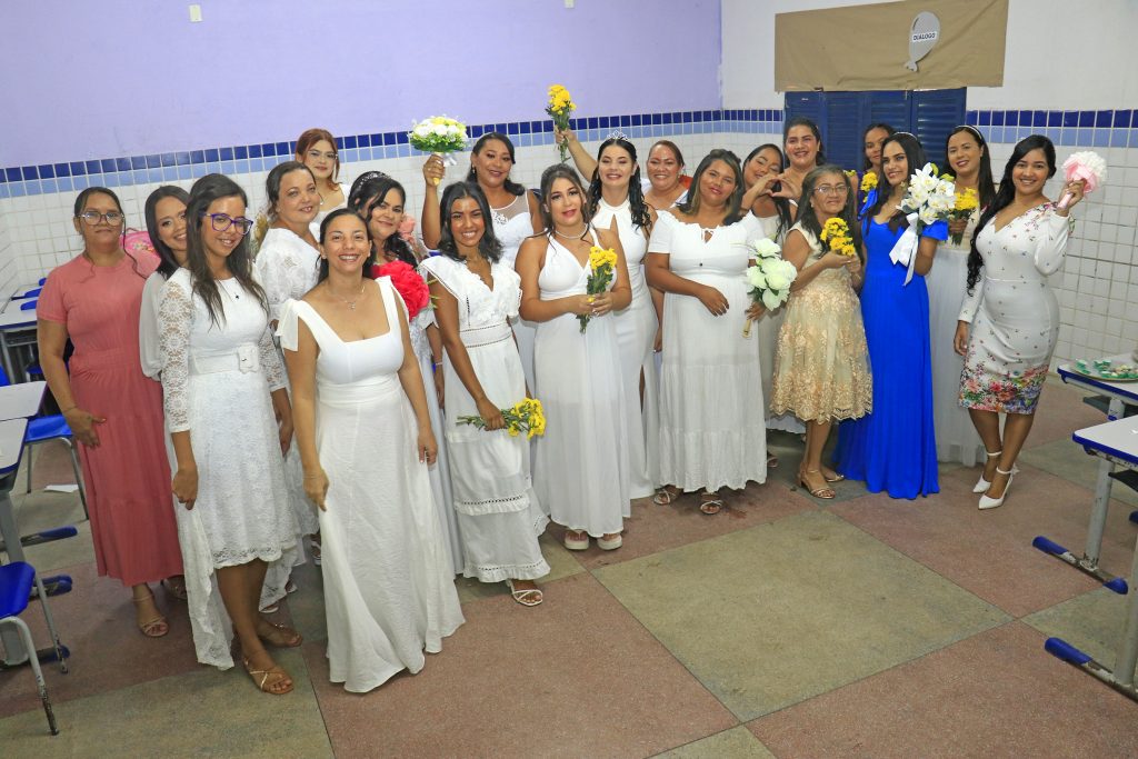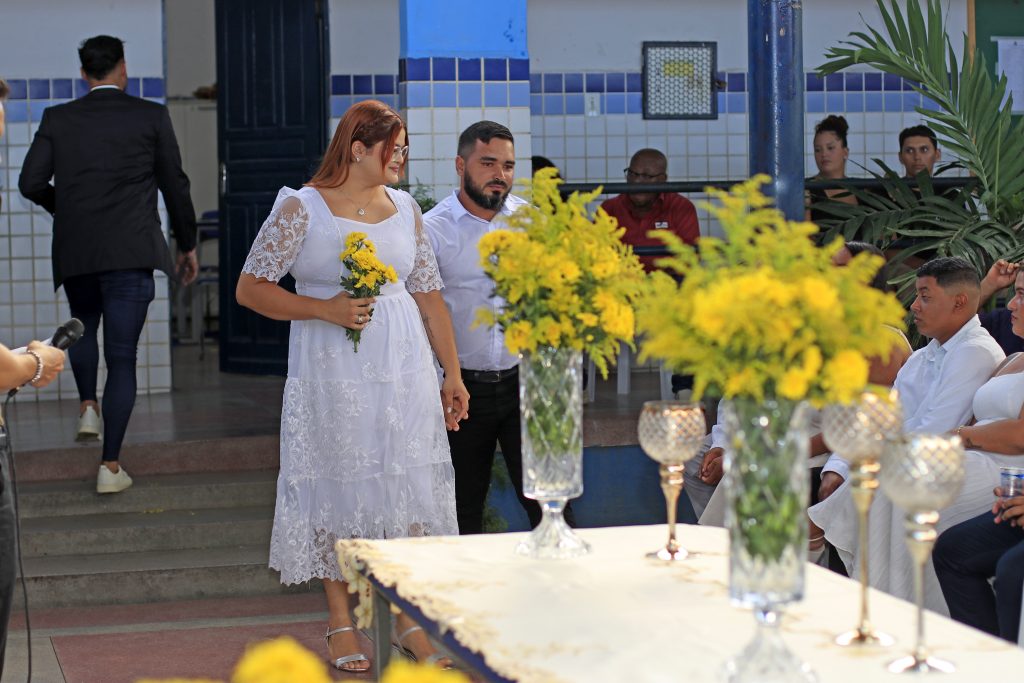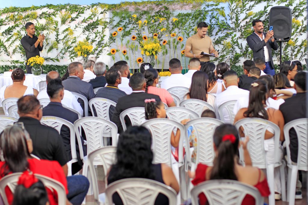 A cerimônia aconteceu na Escola Municipal Presidente João Pessoa, no bairro do Jardim Veneza, e envolveu casais que moram no Residencial Vista do Verde. A iniciativa também abriu espaço para quase 100 convidados, que testemunharam o momento de felicidade de todos eles.