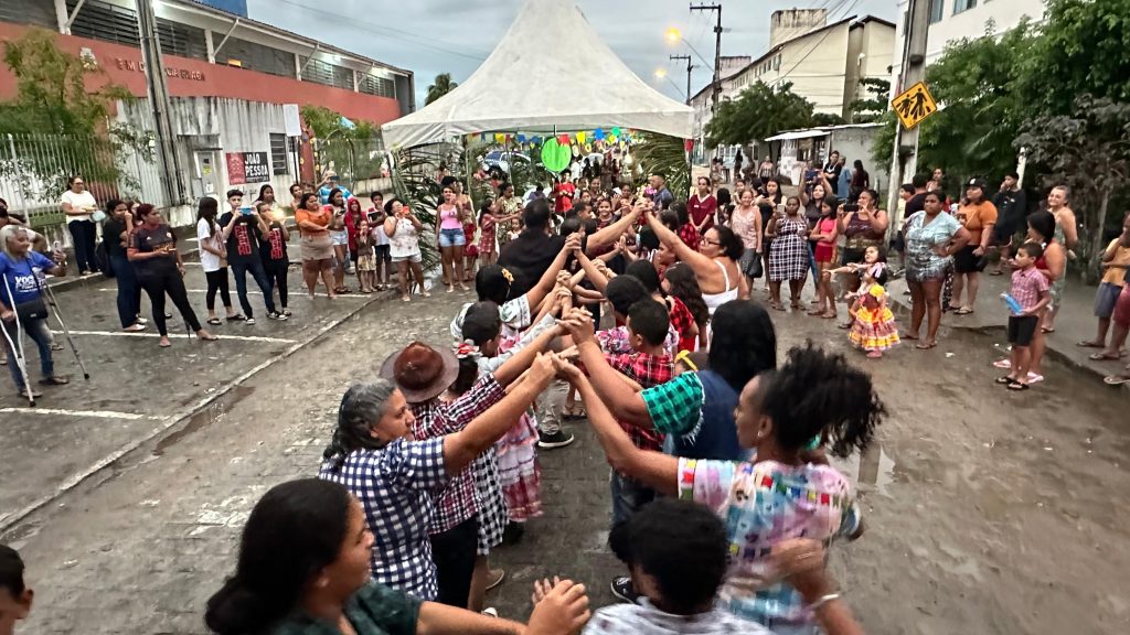 O grupo cultural da Escola Municipal Deputada Lúcia Braga, unidade de ensino que atende as crianças e adolescentes do residencial, também se apresentou no evento e mostrou coreografias de danças típicas, a exemplo da quadrilha junina.