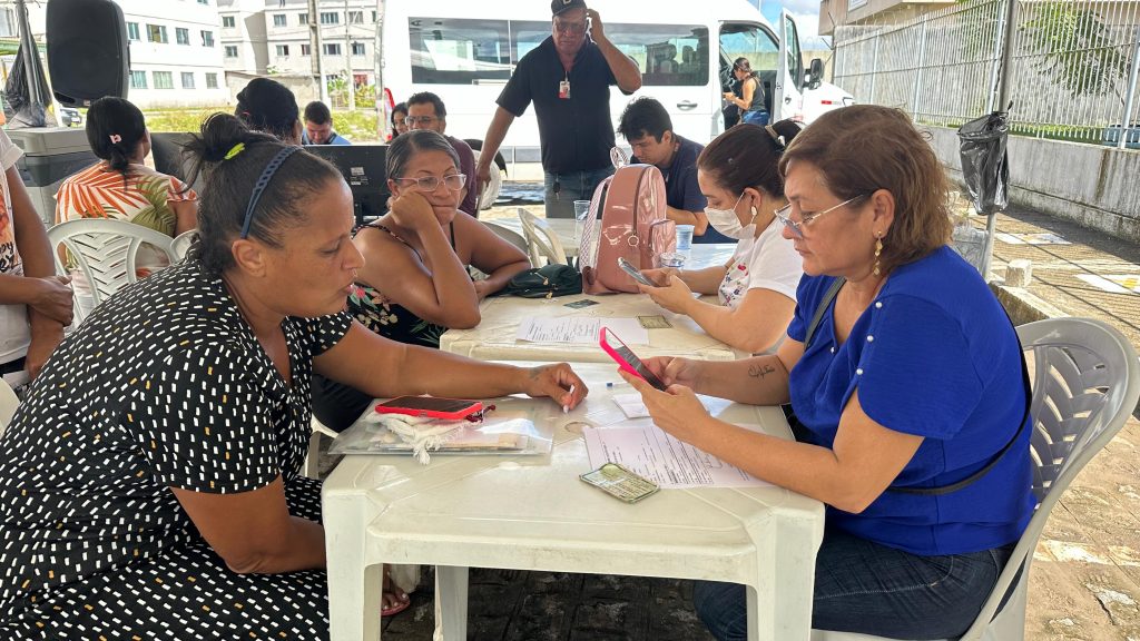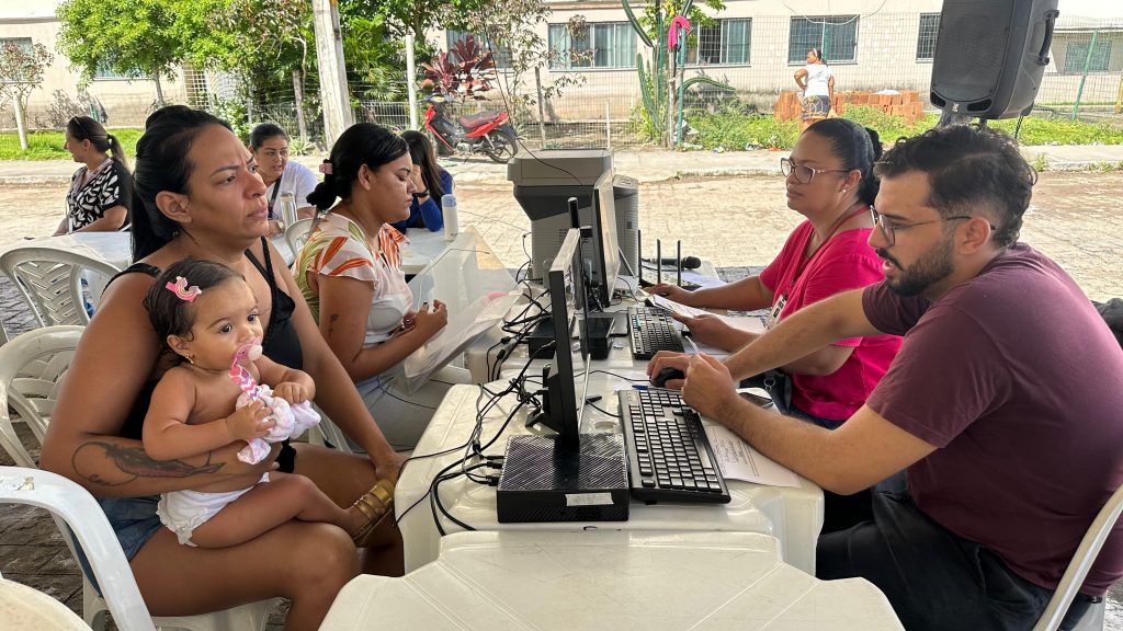 Em mais uma assistência de cidadania, a Prefeitura de João Pessoa atendeu, nesta quarta-feira (8), as famílias que moram no Residencial Vista Alegre VII, no bairro Colinas do Sul. Foi o projeto ‘Ação Mais’, que oferecendo aos moradores a oportunidade de se inscrever ou atualizar os dados no Cadastro Único do Governo Federal, se inscrever no Programa Pão e Leite e no Bolsa Família, bem como se cadastrar no Programa para Aquisição de Alimentos (PAA), que beneficia pessoas em vulnerabilidade social com a distribuição de alimentos. O trabalho é resultado de uma parceria entre as Secretarias de Habitação Social (Semhab), de Desenvolvimento Social (Sedes) e de Direitos Humanos e Cidadania (Sedhuc).