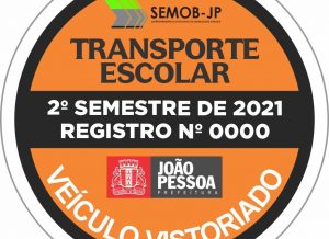 Selo – Ao ser aprovado, o veículo recebe um selo adesivo na cor laranja, correspondente à vistoria do segundo semestre do ano, que é afixado no para-brisa dianteiro. A Semob-JP recomenda aos pais dos alunos que antes de contratarem o serviço procurem informações junto à Divisão de Transportes (3218-9350) para saber se o veículo está devidamente cadastrado e regularizado.