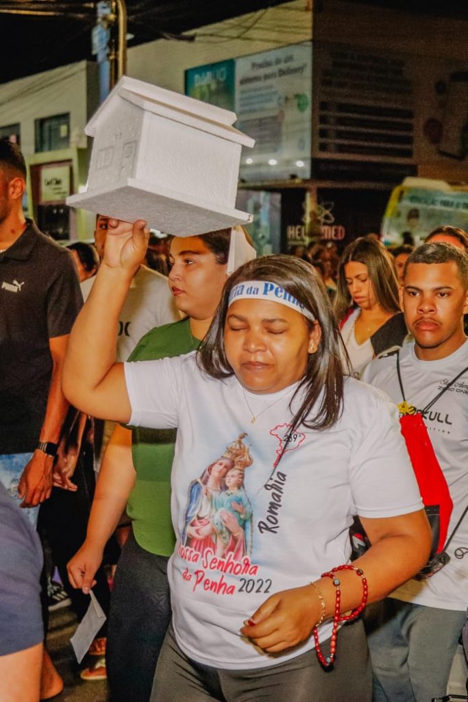 A imagem de Nossa Senhora da Penha foi seguida por gente de fé que queria expressar, de várias formas, o agradecimento por bênçãos alcançadas. Uma delas foi Rosilene dos Santos, que carregou a maquete de uma casa para simbolizar o imóvel adquirido pelo seu filho. “São três anos participando e sempre agradecendo por uma benção. Já foi o emprego do meu marido e, hoje, a casa do meu filho, que eu pedi muito a Nossa Senhora da Penha”, afirmou a devota.