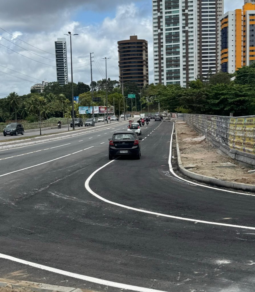 A Prefeitura de João Pessoa concluiu mais uma obra de mobilidade na cidade. Trata-se de mais duas faixas de rolamento na Rua Paulino Pinto para quem vai acessar a Avenida Ministro José Américo de Almeida (Av. Beira Rio), que foi liberada para o tráfego na manhã deste sábado (05). A obra foi executada pela Secretaria de Infraestrutura (Seinfra), com projeto da Secretaria de Planejamento (Seplan) e da Superintendência Executiva de Mobilidade Urbana de João Pessoa (Semob-JP).