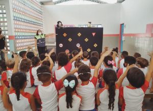 Atividades – Após a acolhida na chegada a unidade educacional, as equipes da Semob-JP farão apresentação com teatro de bonecos e entrega de kits com cartilhas educativas, que inclui lápis grafite personalizado com plaquinha de trânsito e lápis de cor.