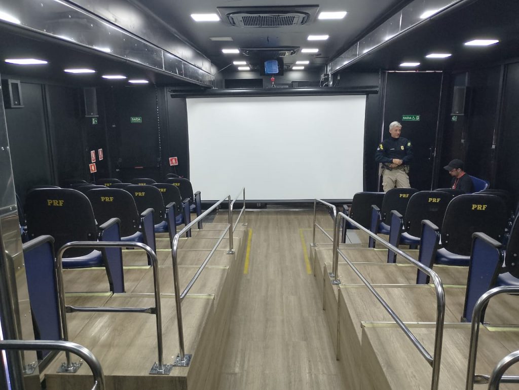 Funcionamento da carreta – As palestras educativas e apresentações de vídeos ocorrerão, na Carreta do Cinema Rodoviário da PRF, nos turnos manhã, tarde e noite, nos horários das 9h às 12h e das 16h às 19h.