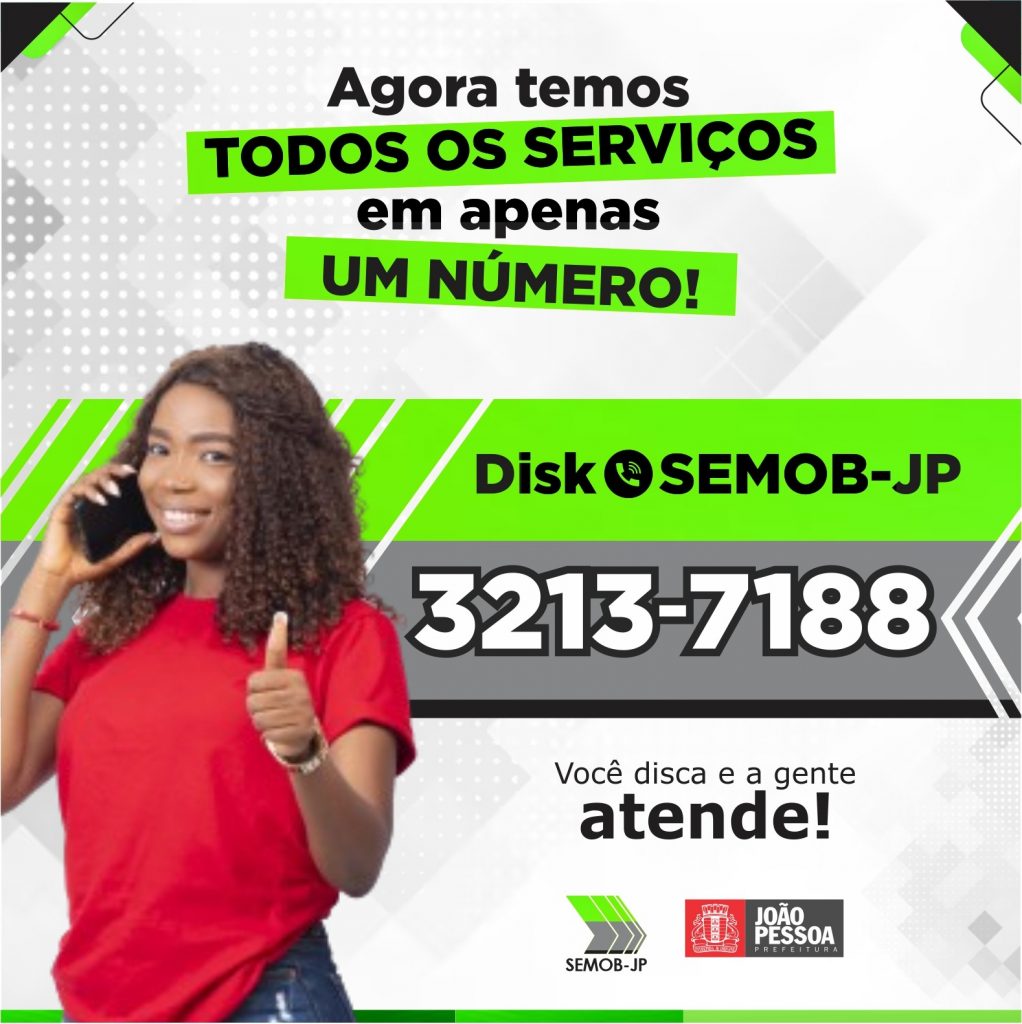 Ampliando o diálogo com a população através da modernização do sistema de telefonia, a Superintendência Executiva de Mobilidade Urbana de João Pessoa (Semob-JP) está disponibilizando, a partir desta segunda-feira (22), um único número telefônico para que as pessoas tenham acesso a todos os serviços relacionados ao trânsito e transporte da cidade. A nova central de atendimento poderá ser acionada discando 3213-7188.