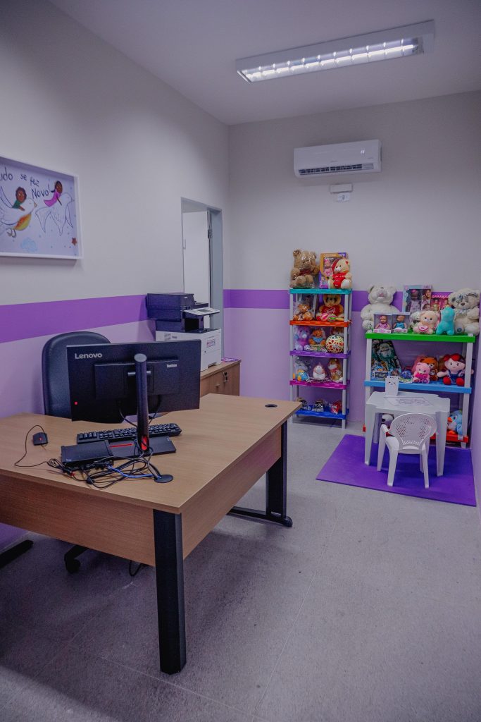 Lugar de acolhida – Raquel Azevedo, diretora do Instituto de Polícia Científica (IPC), disse que o espaço da Sala Lilás foi pensado para facilitar o acesso aos exames periciais de forma acolhedora. “Aqui, no Instituto, nós podemos materializar esse dano, essa violência. Então, quando a mulher sofre a violência, muitas vezes elas querem encerrar logo esse processo, voltarem para as suas casas. E esse espaço é uma tentativa de que, nesse momento de tanta vulnerabilidade, elas possam sentir um pouco desse acolhimento da casa e, com isso, nós não perdemos essa prova material”, detalhou.