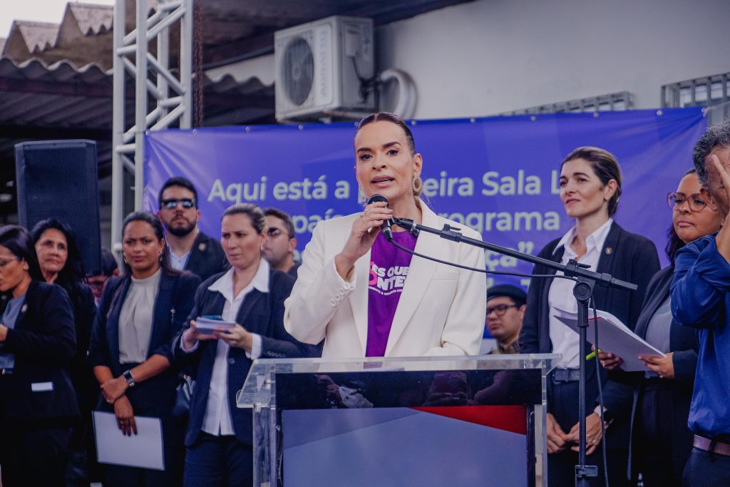 “Eu fico muito feliz de saber que uma política pública tão importante como a Sala Lilás, que é um momento em que a mulher está muito fragilizada, ela tem que denunciar o seu marido, o homem que ela se apaixonou, que ela amou, que ela construiu família e filhos, ela tem que trazer esse homem pra ser julgado, pra passar por um processo doloroso para os dois. Mas ela precisa ter muita coragem. Eu me lembro que em 2016, quando eu sofri violência doméstica, eu fiquei muito assustada porque eu nunca tinha entrado na delegacia de mulheres, embora eu assisti muito meu pai agredindo a minha mãe”, desabafou.