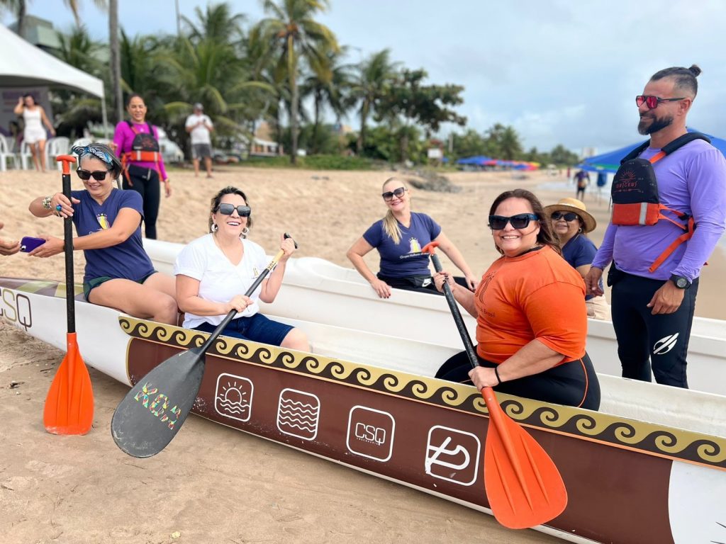 Antes de entrar no mar, as participantes tiveram um momento de compartilhamento e também orientações sobre como utilizar uma canoa havaiana. “Nós ficamos muito felizes e essa parceria já vem no quarto projeto. A gente se realiza porque as causas sociais são causas importantes para a Origem. Nós, como canoa havaiana, temos um senso de comunidade e essa comunidade se estende a nossa sociedade. Então, faz parte do nosso papel estar contribuindo para essas ações, contribuir para que essas mulheres recuperem sua autoestima”, afirmou Marcela Tozzi, sócia-proprietária da empresa Origens.