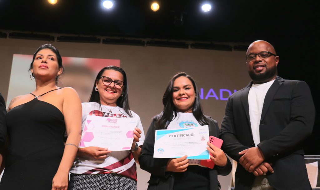 Mulheres capacitadas e empoderadas – Amanda Maria Nogueira da Cruz se formou no curso de Beleza Social. E como ela mesma definiu, a capacitação a tirou de uma situação caótica. “Eu comecei o curso no INADH totalmente desestabilizada e o curso me fez ter uma expansão. Para uma mãe solo de três filhos é muito complicado hoje em dia. Essa capacitação foi um divisor de coisas para mim, foi algo extraordinário para muitos. Pode ser um pouquinho, um simples curso, mas para quem saiu de um cenário caótico, é grande coisa”, contou.