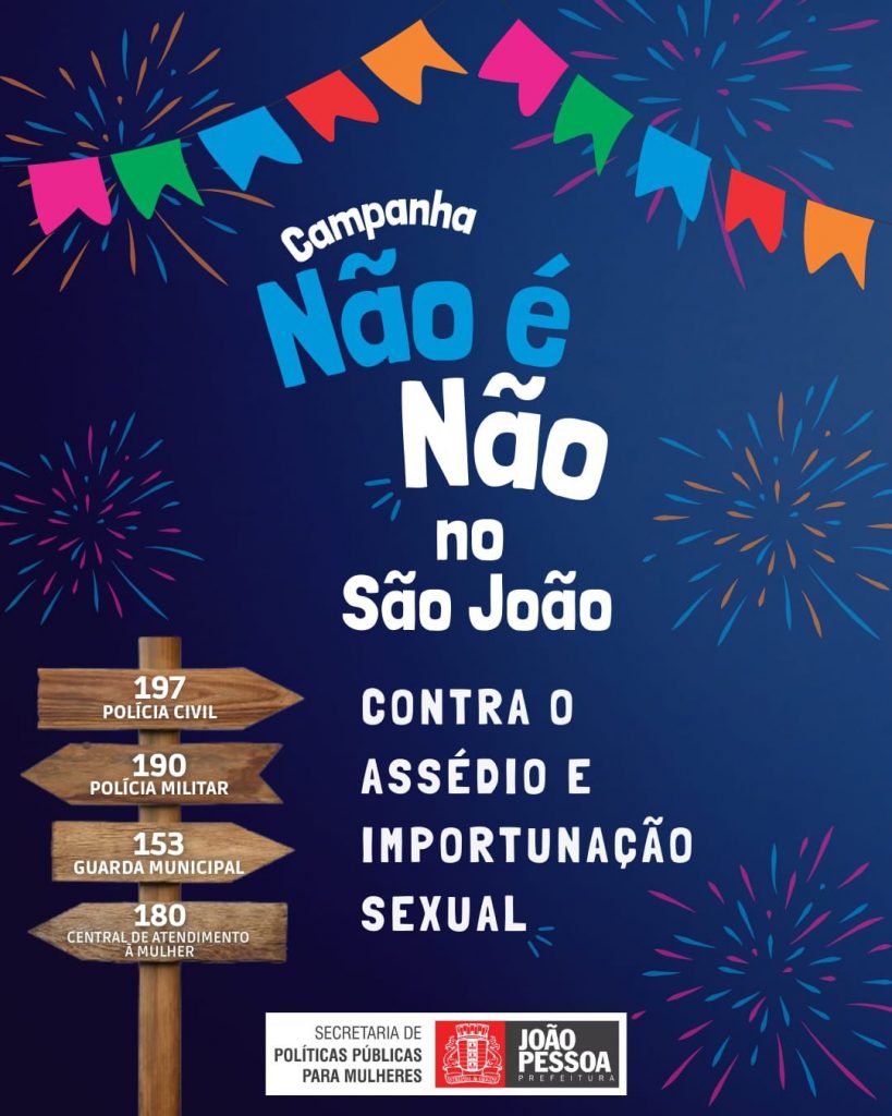 A Prefeitura de João Pessoa lança, nesta quinta-feira (6), a Campanha ‘Não é não no São João’, que tem como foco o combate ao assédio e a importunação sexual durante os festejos juninos. O lançamento será às 10h, no Paço Municipal, Centro da Capital.
