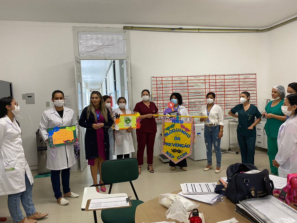 Profissionais da unidade realizaram o ‘Bloquinho da Prevenção’, que visitou diversos setores do hospital, abordando profissionais de saúde, internos e usuários em atendimento sobre a importância da segurança do paciente, com foco nas metas 1 e 5. A meta 1 diz respeito a identificação do paciente, enquanto a meta 5 trata da higienização das mãos, prevenindo infecção relacionada à assistência à saúde.