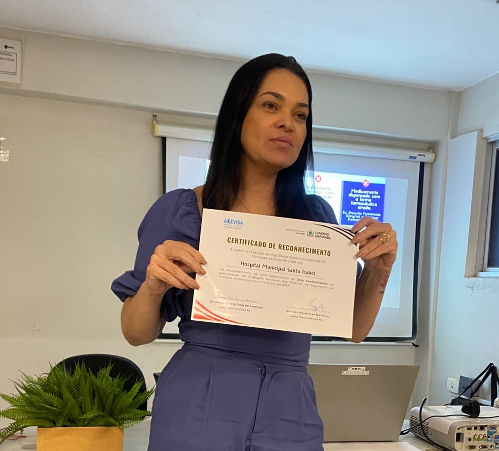 O Hospital Municipal Santa Isabel (HMSI) recebeu, nesta terça-feira (24), pelo segundo ano consecutivo, o certificado de alta adesão às práticas de segurança do paciente concedido pela Agência Nacional de Vigilância Sanitária (Anvisa). A entrega do certificado foi realizada pela Agência Estadual de Vigilância Sanitária (Agevisa-PB).