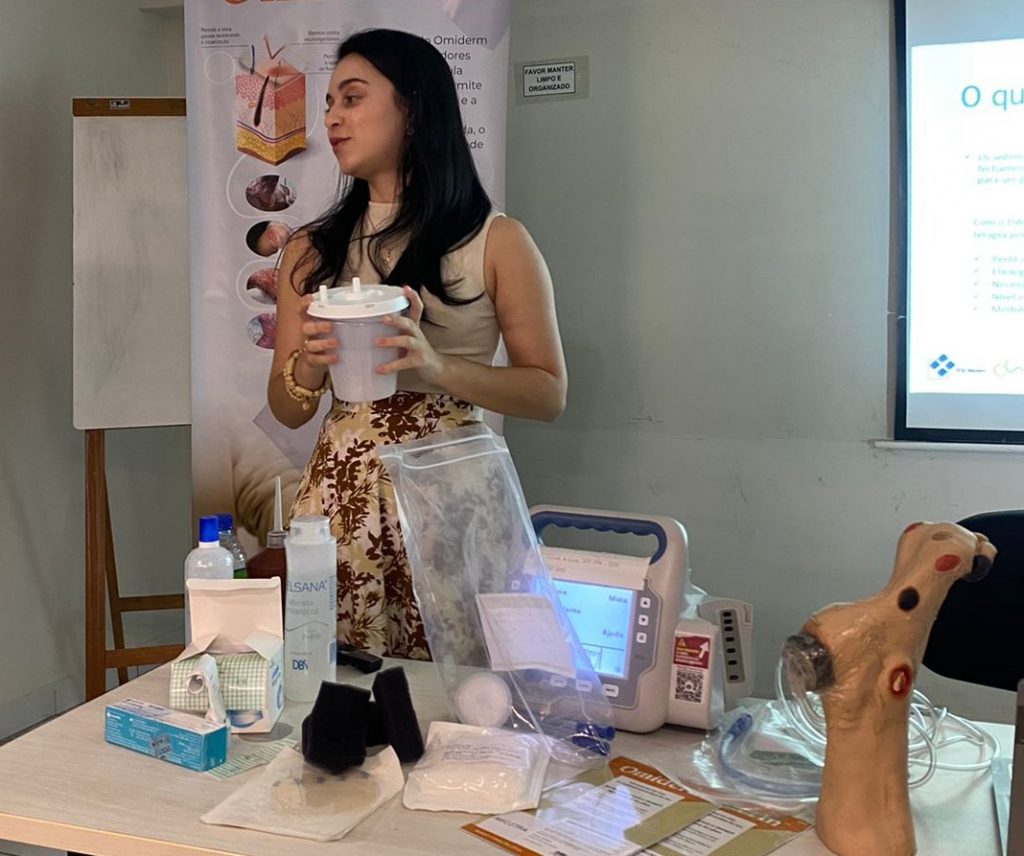 “O treinamento teve como objetivo capacitar os profissionais de saúde para trabalhar com esse tipo de curativo, que é um curativo especial, que garante a recuperação mais rápida dos pacientes, reduzindo o tempo de permanência na instituição”, disse a enfermeira Leide Carvalho, que coordena a Gerência de Enfermagem do Hospital Santa Isabel.