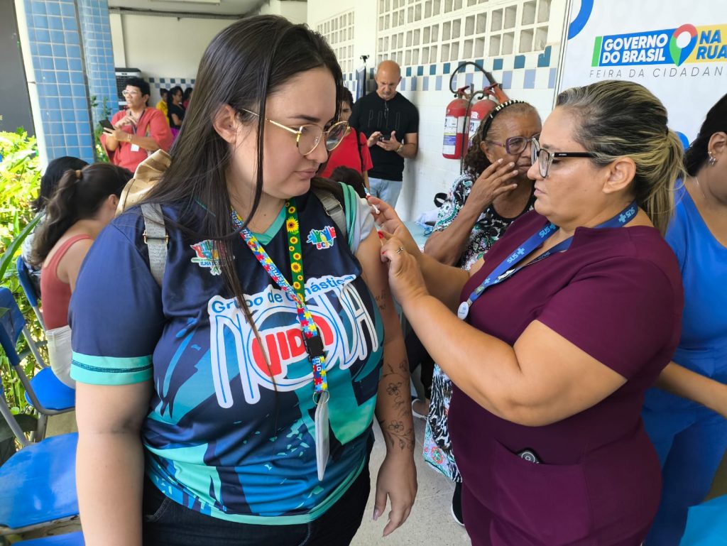 A oferta de vacinação para todas as idades foi um dos principais destaques da Feira da Cidadania do programa Governo do Brasil na Rua, iniciativa do Governo Federal realizada nesta quinta-feira (23), no bairro de Mangabeira, que completa 43 anos de fundação. O evento reuniu, em um só local, diversos atendimentos essenciais à população, como o objetivo de ampliar o acesso às políticas públicas, levando serviços gratuitos diretamente às comunidades e fortalecendo o exercício dos direitos e da cidadania.