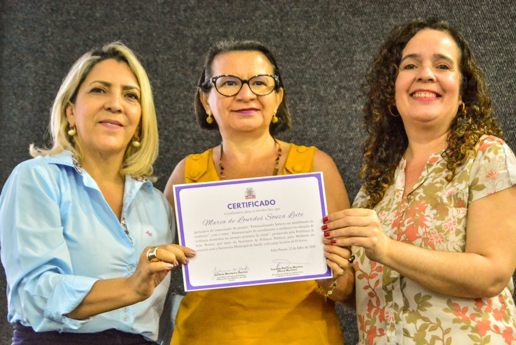 Mais de 900 profissionais da atenção básica à saúde de João Pessoa receberam, na manhã desta quinta-feira (5), certificados do curso ‘Potencializando saberes: no atendimento às mulheres’. A capacitação foi promovida pela Secretaria Extraordinária de Políticas Públicas para as Mulheres (SEPPM), em parceria com a Secretaria Municipal de Saúde (SMS), com foco no atendimento às vítimas de violência doméstica.