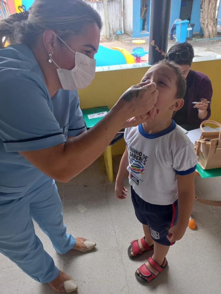 Ofertar a aplicação de doses de imunizantes no ambiente escolar é uma importante estratégia para garantir a retomada das altas coberturas vacinais e reduzir doenças imunopreveníveis. Por isso, entre os dias 10 e 14 de junho, a Prefeitura de João Pessoa realiza a Semana de Vacinação contra a Poliomielite nas Escolas, onde as equipes da Secretaria Municipal de Saúde (SMS) estão visitando unidades de ensino infantil e ‘Ninhos do Saber’ em toda Capital.