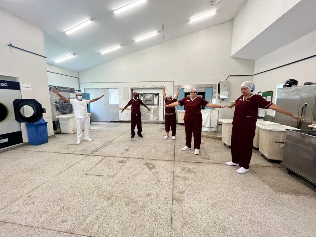 Inicialmente, a ginástica laboral está sendo oferecida em dois dias da semana, nas segundas e quartas-feiras, para servidores dos setores de costura, lavanderia, manutenção, Recursos Humanos (RH) e almoxarifado. A proposta é, gradativamente, avançar para os diversos setores da unidade hospitalar.