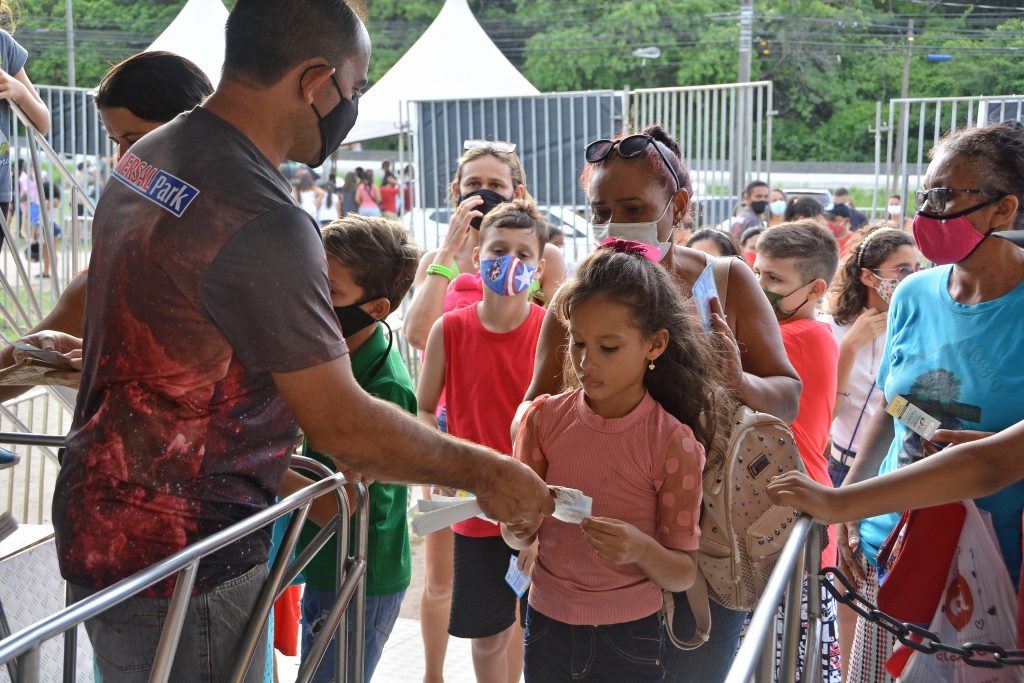 Cada criança vacinada recebeu dois passaportes de acesso aos brinquedos, um para ela e outro para o acompanhante, que poderão ser usados até a próxima sexta-feira (1º).
