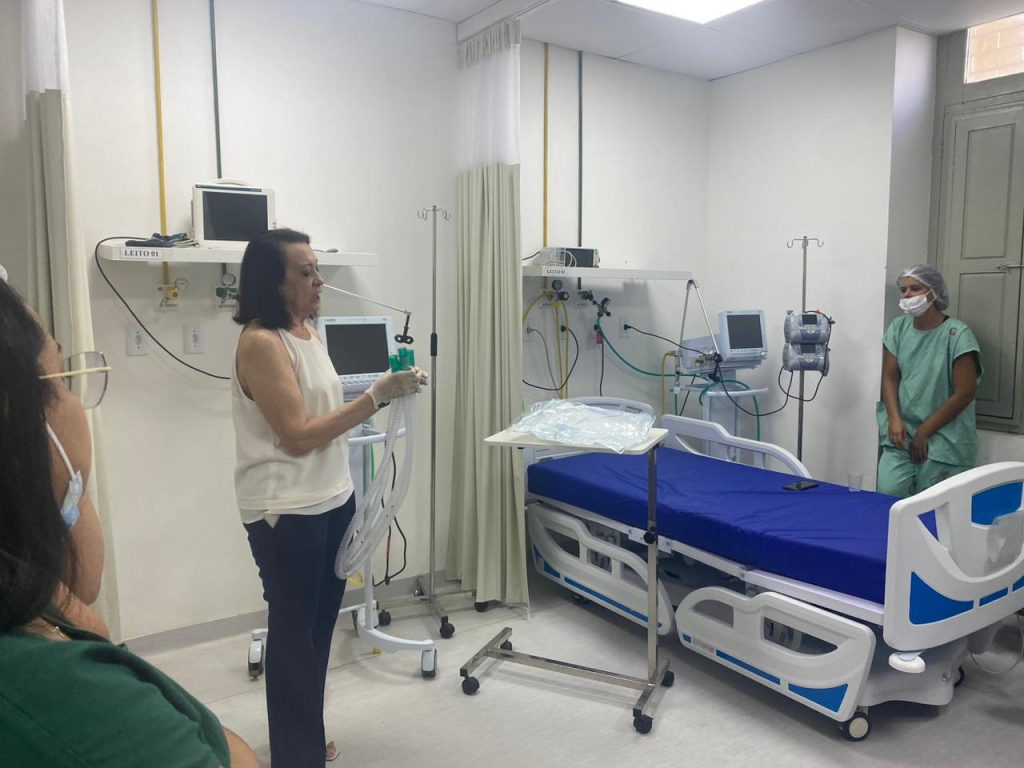 “São atividades preventivas para evitar que o paciente tenha essa pneumonia. O treinamento foi em cima disso, onde abordamos tudo o que o profissional faz, das ações indiretas, que são as ações feitas no ventilador, e as intervenções diretas, que são as feitas no paciente, desde a colocação da posição”, explicou Maria Nelusia.