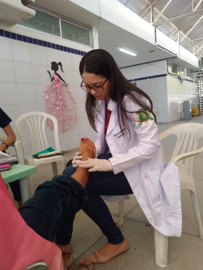 De acordo com Denise Mota Araripe, médica preceptora da Residência em Medicina da Família e Comunidade, o cuidado com os pés da pessoa com diabetes é parte essencial do acompanhamento na Atenção Primária. “Permite identificar precocemente sinais de risco, como perda de sensibilidade, alterações vasculares e pequenas lesões que podem evoluir de forma grave se não forem tratadas a tempo”, destacou.