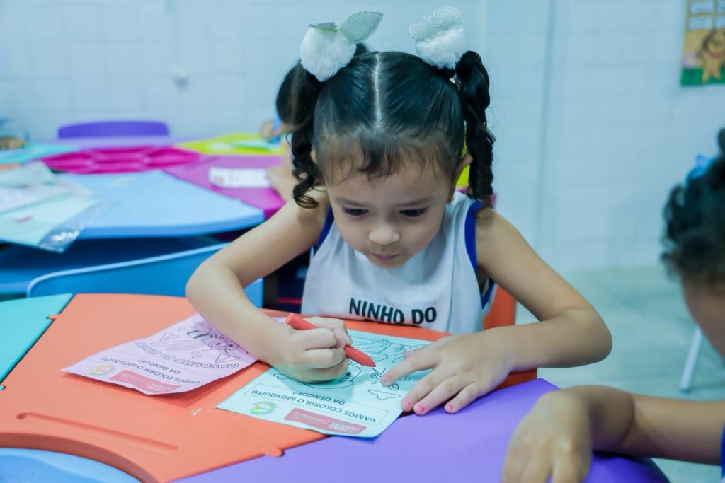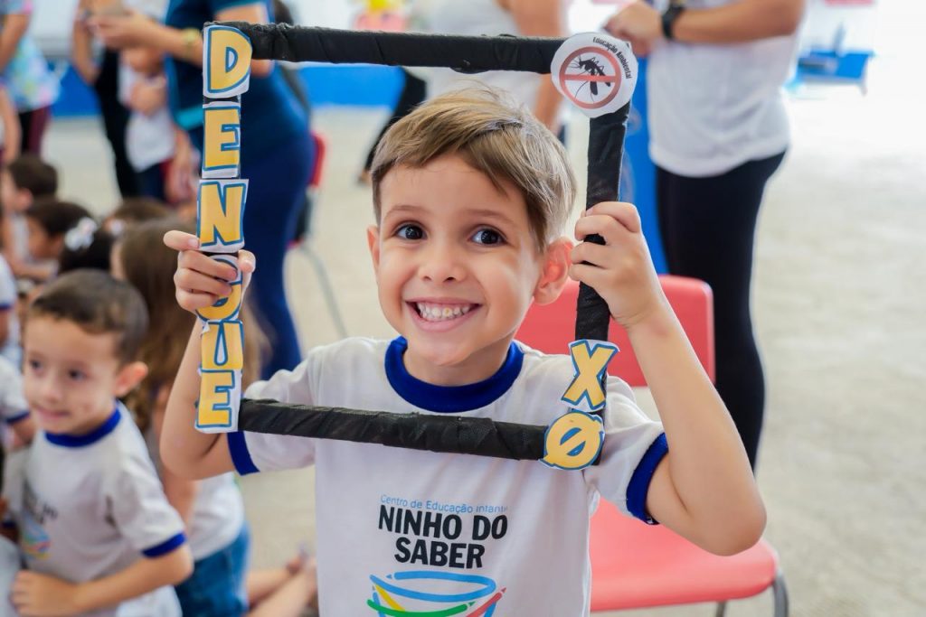 Dando seguimento na programação da Semana de Intensificação das Ações de Prevenção e Controle de Arboviroses, a Secretaria Municipal de Saúde (SMS) realizou, na manhã desta quinta-feira (6), uma atividade lúdica com as crianças do Ninho do Saber Arthur Antônio Belarmino Ferreira, no bairro Bancários. A iniciativa é da equipe da Gerência de Vigilância Ambiental e faz parte do projeto ‘Saúde na Escola’.