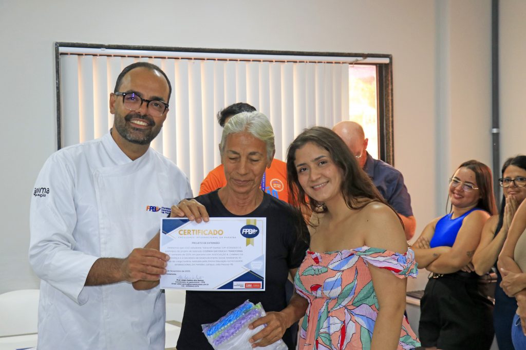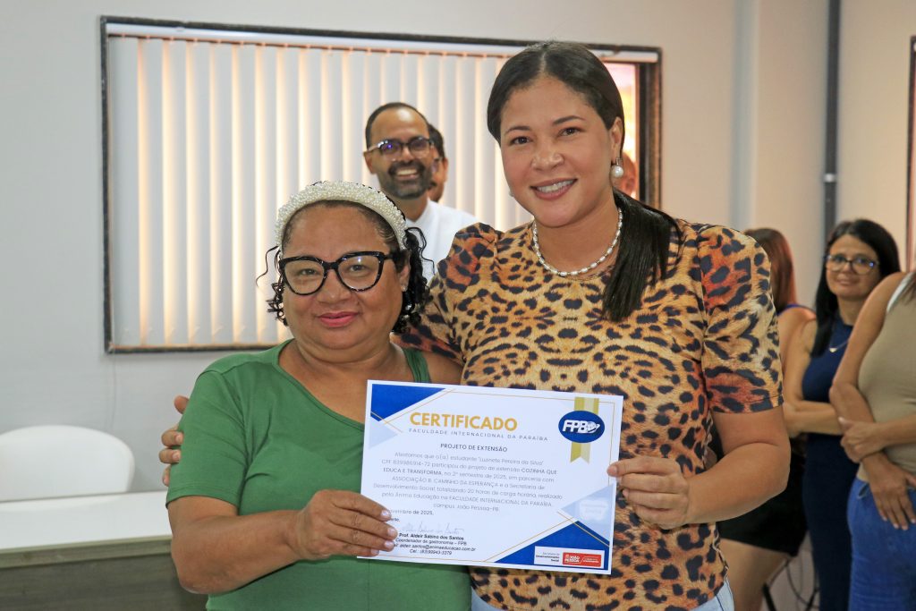A Prefeitura de João Pessoa, por meio da Secretaria de Desenvolvimento Social (Sedes), realizou, nesta quarta-feira (26), a entrega dos certificados para a turma que concluiu o curso de Gastronomia e Aproveitamento de Frutas e Legumes. A formação foi promovida em parceria com a Faculdade da Paraíba (FPB) e a Associação Caminho da Esperança, oferecendo às participantes conhecimentos sobre culinária sustentável e o uso integral de alimentos.