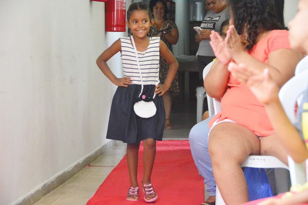Durante o evento, foi realizada uma apresentação onde 18 crianças da comunidade desfilaram as roupas confeccionadas pelas alunas do curso de jeans e moda infantil. Elas foram presenteadas com as roupas desfiladas e ainda mais uma peça. “Gostei muito da roupa e mais ainda de participar do desfile. Quando minha mãe me disse que eu ia participar fiquei muito feliz, vou levar esse momento no meu coração e agradeço muito a quem fez meu vestido”, afirmou Gabrielly Sousa.