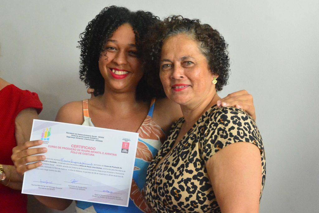 Uma das alunas era Eliene Brito, que fez o curso de jeans e moda infantil. Ela destacou o quanto as aulas no Polo de Costura trazem mais do que conhecimento, mas também oportunidade de socializar com outras pessoas. “Muita coisa que eu não estava bem de saúde e o acolhimento aqui me ajudou a melhorar. Aqui eu aprendi a costurar, agora estou fazendo cursos que possam me especializar e pretendo utilizar esse conhecimento para ajudar na vida financeira da minha família”, ressaltou.