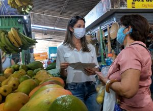Já no Mercado de Mangabeira, foram realizadas abordagens aos comerciantes e consumidores locais para conscientização sobre o desperdício de alimentos e formas de melhor aproveitá-los. Houve a distribuição de folder explicativo e orientação sobre melhores práticas de compras e conservação de alimentos, assim como de aproveitamento e receita de brigadeiro de macaxeira.
