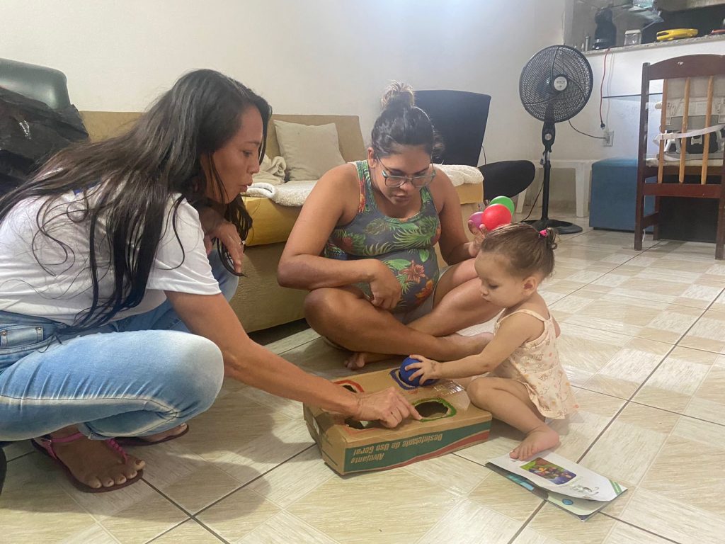 Joelma e Pérola são acompanhadas pela visitadora Gerlane dos Santos, que ainda realiza o trabalho com mais 33 famílias da área. “Para mim, o trabalho é muito gratificante por poder realizar essa atividade com a comunidade, com pessoas carentes e que precisam de ajuda, seja com uma atividade ou com uma palavra. A gente ajuda, ensina o cuidador a interagir mais com a criança, para ajudar no seu desenvolvimento. Está sendo maravilhoso”, destacou.