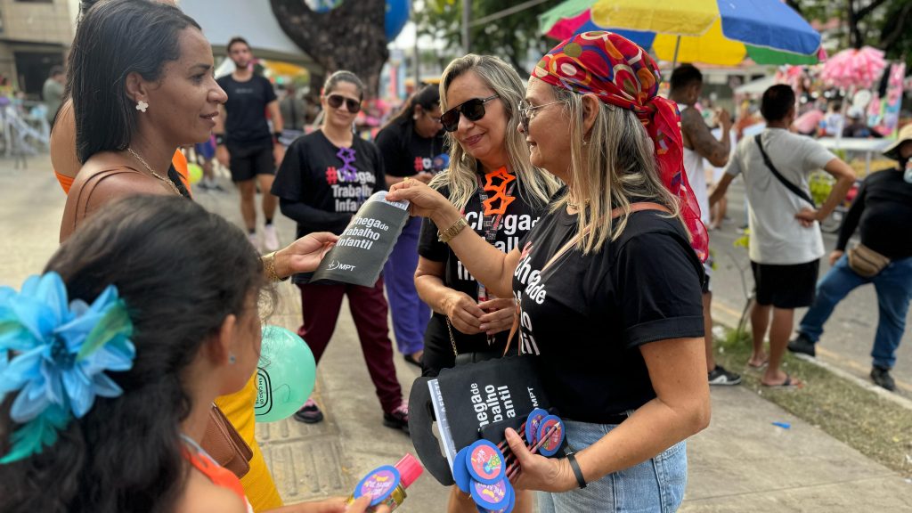A Prefeitura de João Pessoa realizou, nesta segunda-feira (24), uma ação de conscientização pelo enfrentamento ao trabalho infantil durante o desfile do bloco Muriçoquinhas do Miramar. Com o tema ‘Pule, brinque e cuide’, a iniciativa foi coordenada pelo setor de Ações Estratégicas de Erradicação do Trabalho Infantil (Aepeti), da Secretaria de Direitos Humanos e Cidadania (Sedhuc), com o objetivo de informar e sensibilizar a população sobre seu papel no combate à violação dos direitos de crianças e adolescentes.