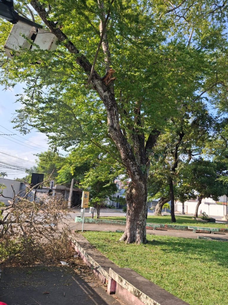 Após a elaboração do laudo, a demanda é enviada à Diretoria de Paisagismo da Sedurb, que executa a poda, o corte ou a retirada da árvore. Em seguida, uma equipe da Autarquia Especial Municipal de Limpeza Urbana (Emlur) realiza a coleta, transporte e descarte dos resíduos no Aterro Sanitário Metropolitano, concluindo o serviço.