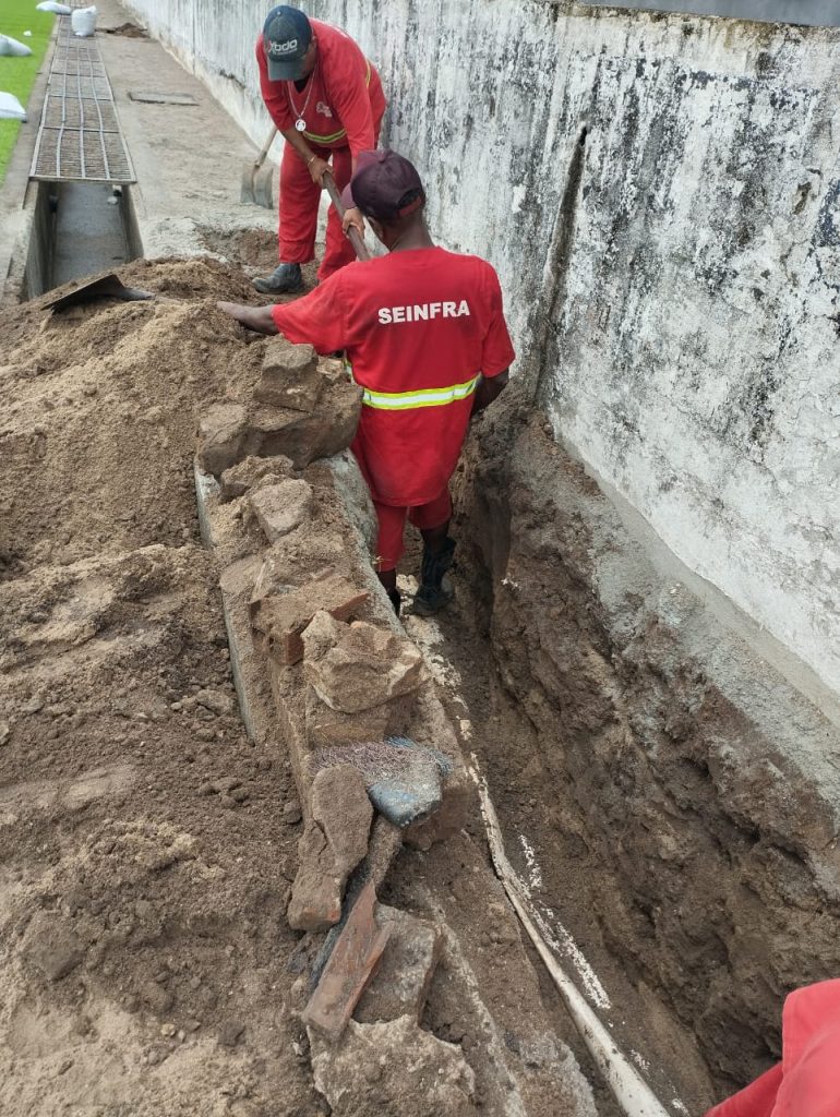 Os serviços em galerias executados durante a semana foram: 85 limpezas de bocas de lobo e caixas coletoras de águas pluviais, cinco recuperações e construções de bocas de lobo e caixas coletoras, cinco grelhas colocadas por toda a cidade (reposições e novas instalações), cinco recuperações de afundamentos da rede de drenagem de águas pluviais. Os trabalhos em execução, nesta sexta-feira (6), são limpeza, desobstrução e recuperação de galerias e reposição de placas. As equipes estão trabalhando nos Funcionários ll, Centro e Cruz das Armas.