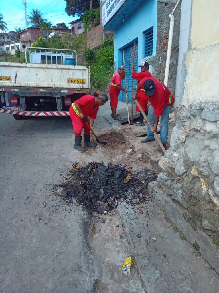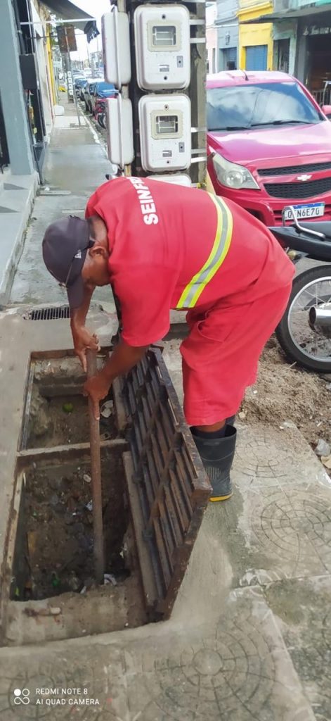 As ações de manutenção na rede de galerias realizam serviços de limpeza e desobstrução com remoção de entulhos no Centro e Varadouro.
