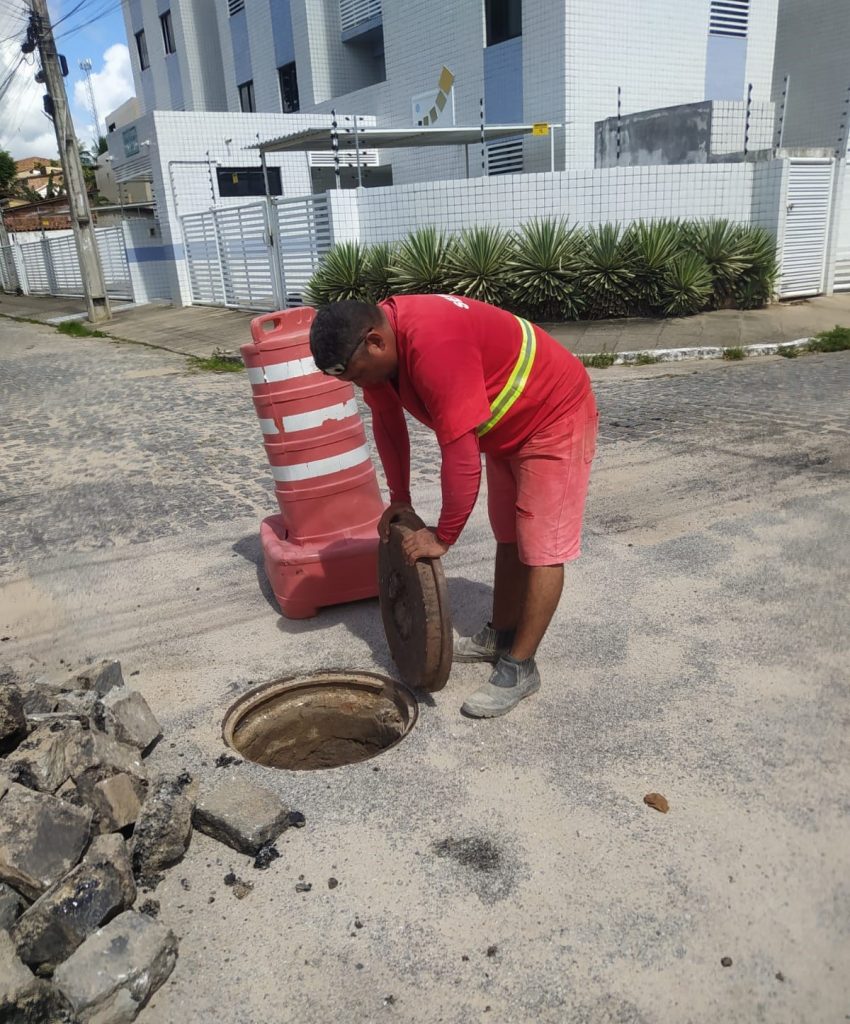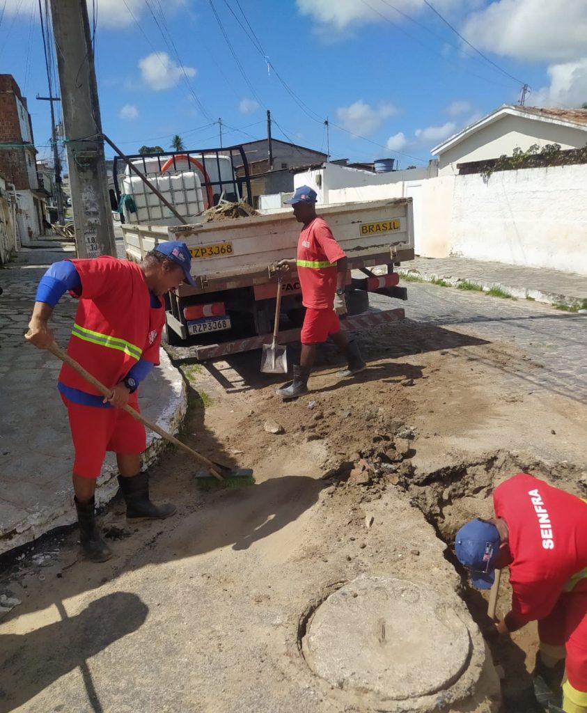 A manutenção na rede de drenagem está acontecendo nos bairros de Cruz das Armas, Varadouro, Mangabeira. Os serviços em execução hoje são recuperação, limpeza e desobstrução de galerias, com retirada de entulho e secagem de fossa.